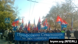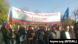 Numayış iştirakçileri rusiyeli devlet ve siyasiy firqalarnıñ bayraqları altında Lenin soqağından Nahimov adına caddesine qadar bardılar.