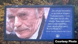 «1968 senesi sovet orduları Çehoslovakiyanı işğal etkeni içün meni üç yılğa apis ettiler. Çehiya prezidenti ise, meni Qırımnıñ işğalinen razı olmamnı çağıra», – dep aytıla bilbordta.