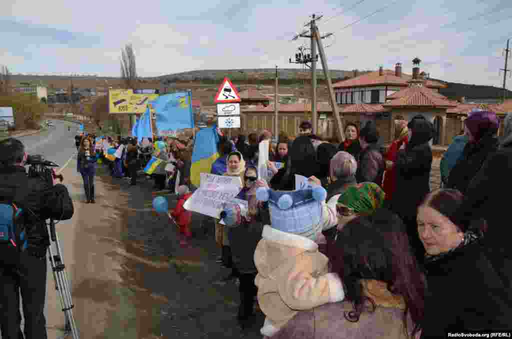 Rusiyeniñ Qırım işğaliniñ ekinci yıllığında Qırım.Aqiqat 2014 senesi Qırım işğali nasıl oldı ve oña qarşı çıqqanlarnıñ aktsiyalarını köstermek içün arhif fotoresimlerini qullana. 2014 senesi mart 6-da Mamaq köyüniñ bir qaç yüz qadını Aqmescit civarında barışıq içün ve Qırımda Rusiye ordusına qarşı aktsiyanı keçirdiler. Olar aylanma yolunda Ukraina bayraqlarınen turıp, sarı-mavı toplarnı aldılar. Yoldan keçken bir çoq maşina ses bere edi.