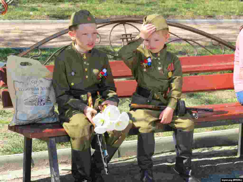 Mayıs 9, fevral 23, “VDV künü” ve Ekinci cian cenkinde Qırım şeerleriniñ nemse ordularından azat etilmesiniñ yıldönümleri - işte, yarımada soqaqlarında arbiy urbada kezgen balalarnı körmek mümkün olğan künlerniñ bir qaçı. Çoqusı kostümlerni “vatanperver” timsalâtınen bezeteler - Rusiye bayrağı, Georgiyev şeritleri, sovet timsallerinen ordenlerniñ mulâjları.