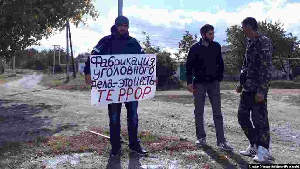 Oktâbrniñ 14-nde Qırımnıñ er tarafıda onlarnen adamlar, bir kişilik piketlerge çıqıp, Rusiyeniñ silâlı hızmetleri tarafından yarımadada yapılğan repressiyalarğa qarşı itiraz bildirdi, ayrıca – qırımtatarlarğa, Qırım musulmanlarına qarşı yapılğan başqılarqa qarşı. Rusiyeli politsiya 49 adamnı tuttı. Olarnıñ episi, rayon bölüklerinde ifadelerini berip, yiberilgen. Bunı rusiyeli «İnterfaks», Qırımdaki Rusiye İİN idaresiniñ matbuat hızmetine atıf etip, haber ete.