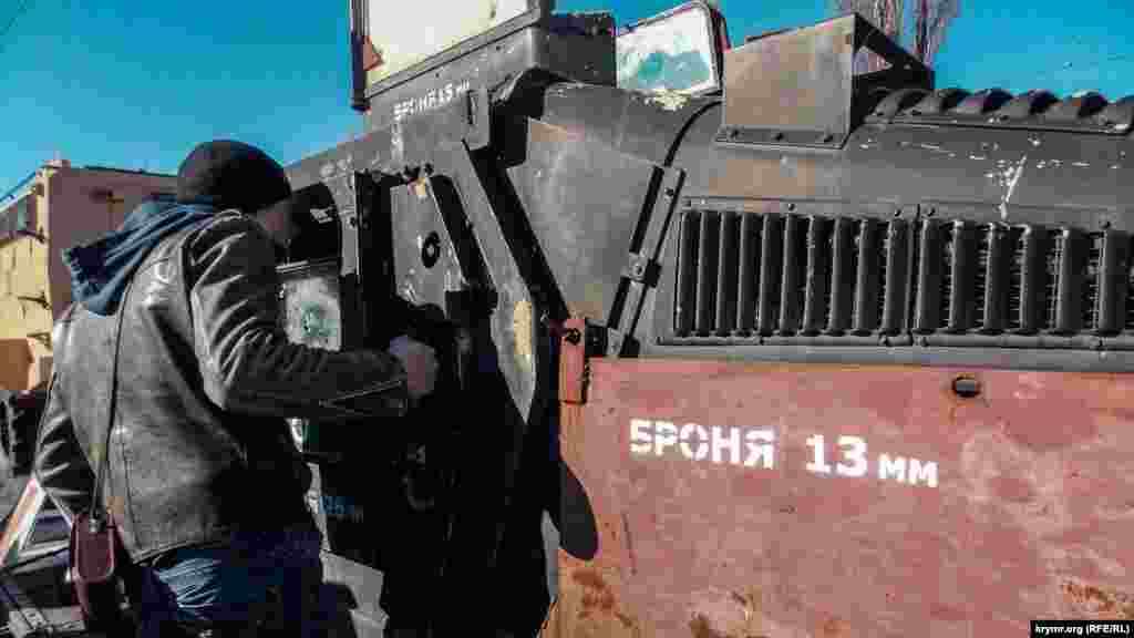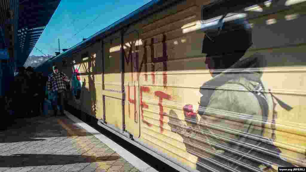 Martnıñ 3-ünde saba Aqyarda demiryol vokzalında“Suriye qırığı” köçme sergisi açıldı. Sergi nümüneleri arasında sanki “Suriye uruşlarında terrorcılardan tutılıp alınğan” silâ ve teçhizatlar kösterile. Olarnıñ arasında, teşkilcilerniñ aytqanına köre, özyapma patlayıcı cihazlar, qanunsız himiyeviy ameliyathane, “şeitlerniñ maşnası” ve arbiy maqsatlar içün deñiştirilgen maşnalar.