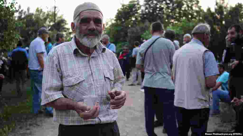 Mayıs 31-inde aqşam iftar mahkeme binası yanında keçti. Aqşam namazından soñ, mahkeme ükmüni beklep, toplanğanlar hurma ve suvnen bölüşe edi. Qırım.Aqiqat mühbiri bunıñsüretlerini çekti.